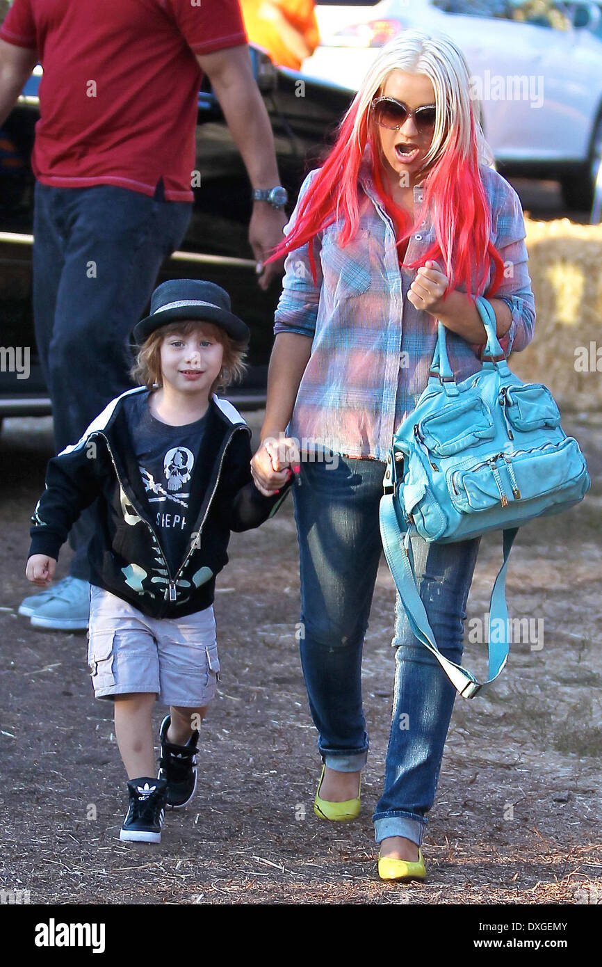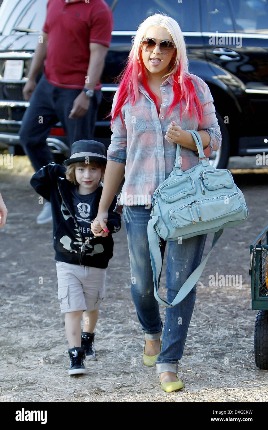Christina Aguilera Son Max Bratman Pick Pumpkins In Los