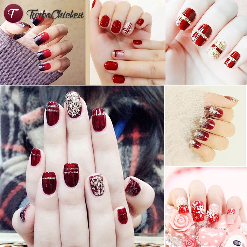 Ab 24 Pcs Set Fashion Red Fake Nail With Glitter Acrylic Full