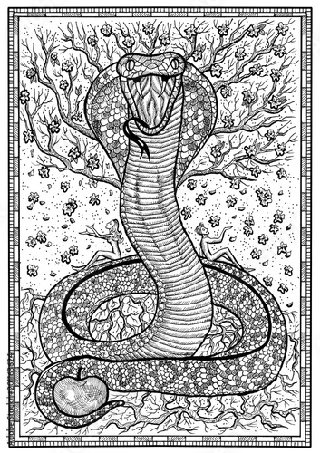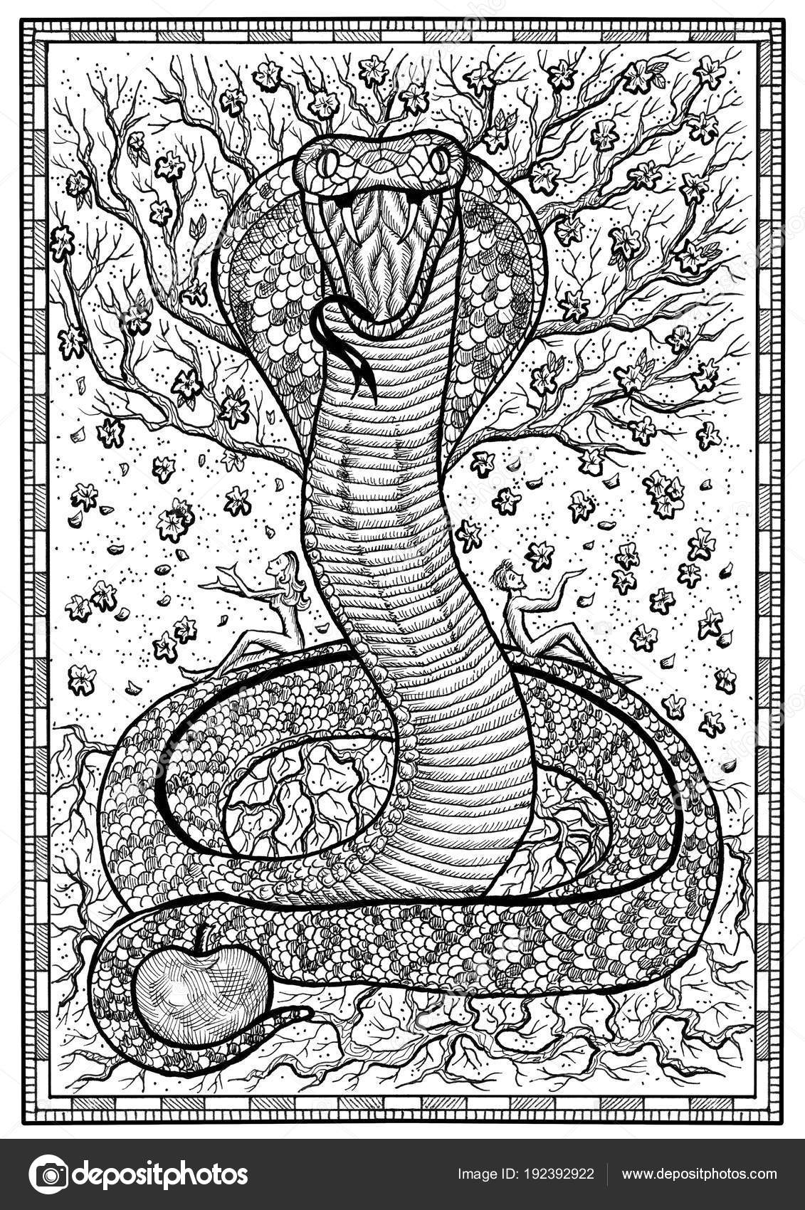 Snake Symbol With Eve Adam Tree Of Knowledge And Flowers Fantasy