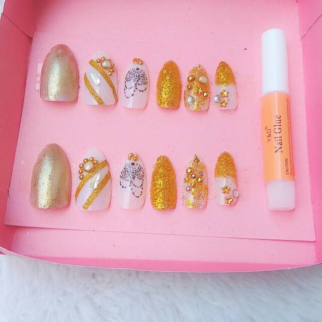 Jual Gdr Kuku Palsu 3d Wedding Fake Nail Nailart Gold Kab Kediri Eca Lancar Tokopedia