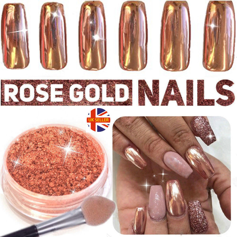 Details About Rose Gold Dust Nails Powder Gel Polish Mirror Chrome Effect Pigments Nail Art Uk