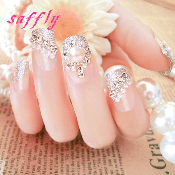 2019 Art 3d False Nails Rhinestone Fake Pearl Glitter Full Cover
