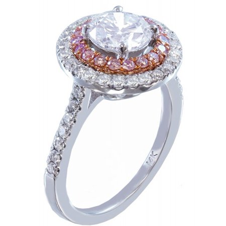 14k White Gold Round Cut Diamond Engagement Ring Pink Diamond 1 80ctw