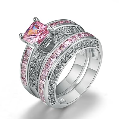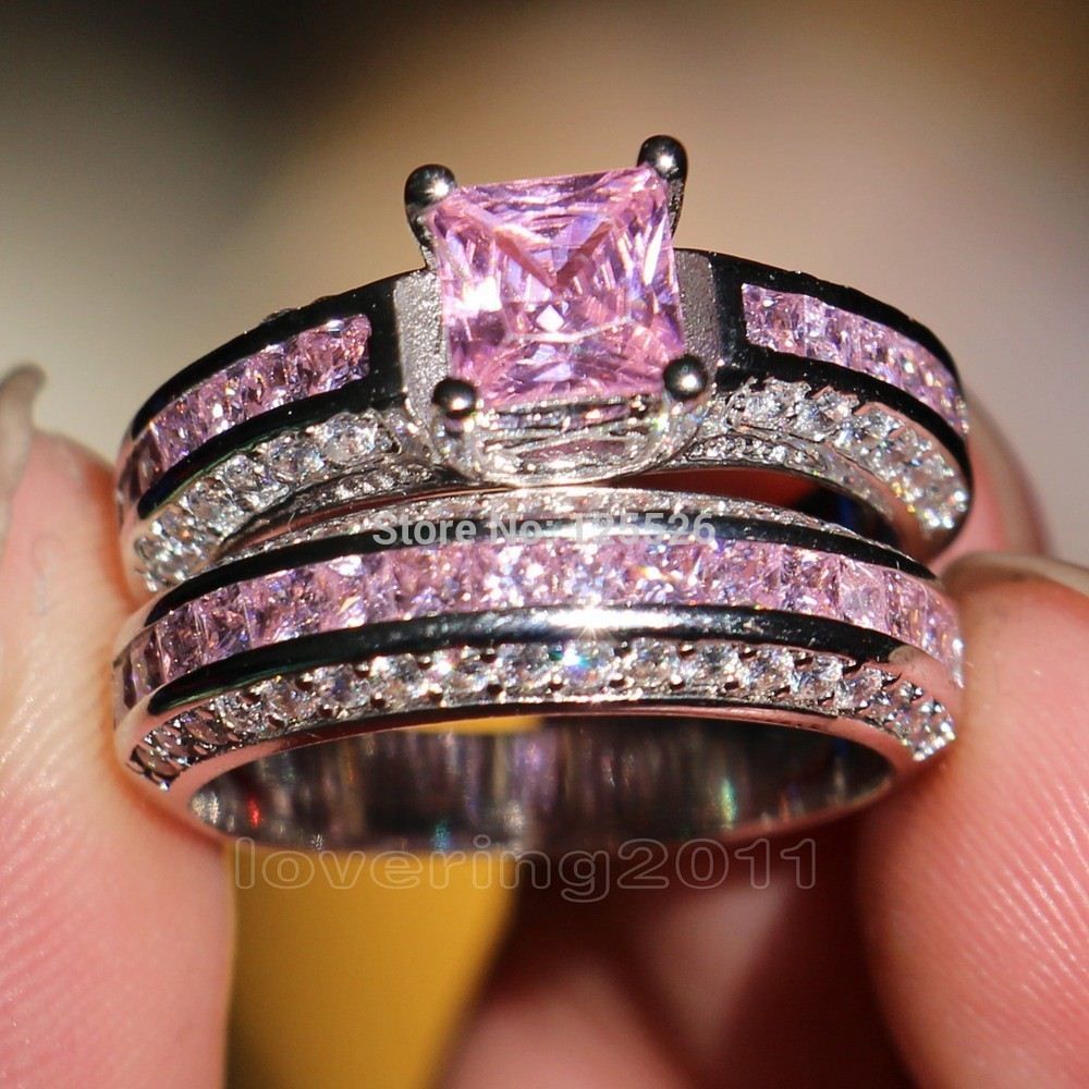 001 Victoria Wieck Princess Cut Pink Sapphire Simulated Diamond 10kt White Gold Filled Engagement Wedding Band Ring Set Sz 5 11 Gift Mens Wedding