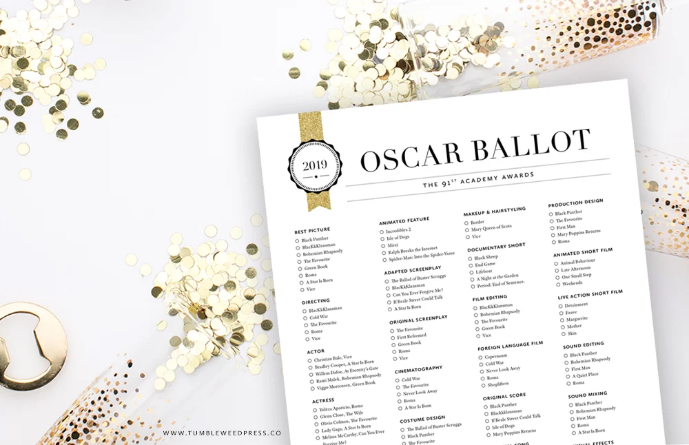 Oscars 2019 Download Our Printable Ballot The Gold Knight